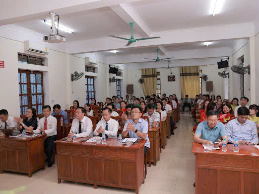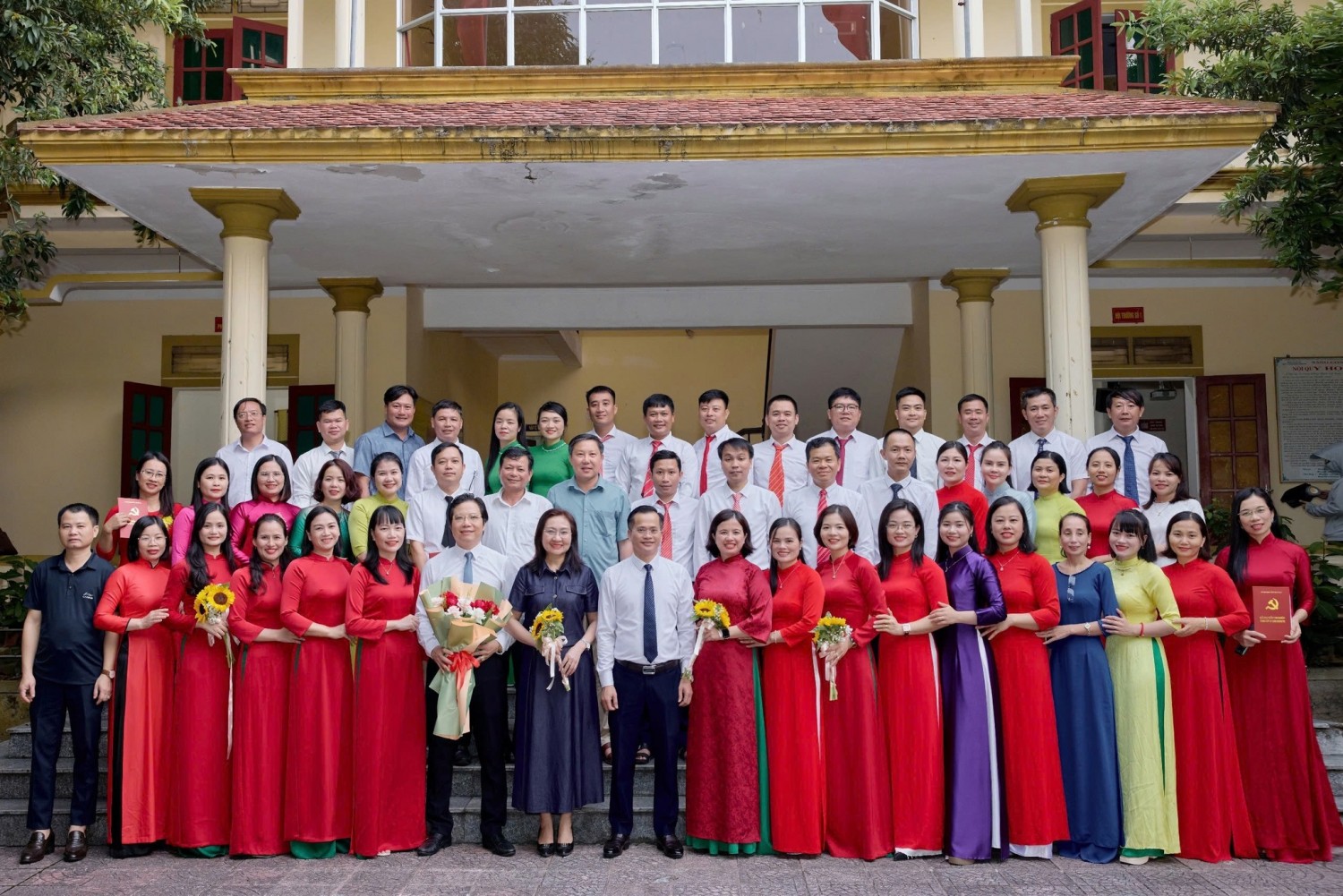 T.S Nguyễn Quang Ngọc, Phó Hiệu trưởng Trường Chính trị Trần Phú và đồng chí Bùi Văn Sơn, Phó Bí thư Thường trực Huyện ủy, Chủ tịch HĐND huyện trao giấy khen và hoa cho các học viên có thành tích trong học tập và rèn luyện.