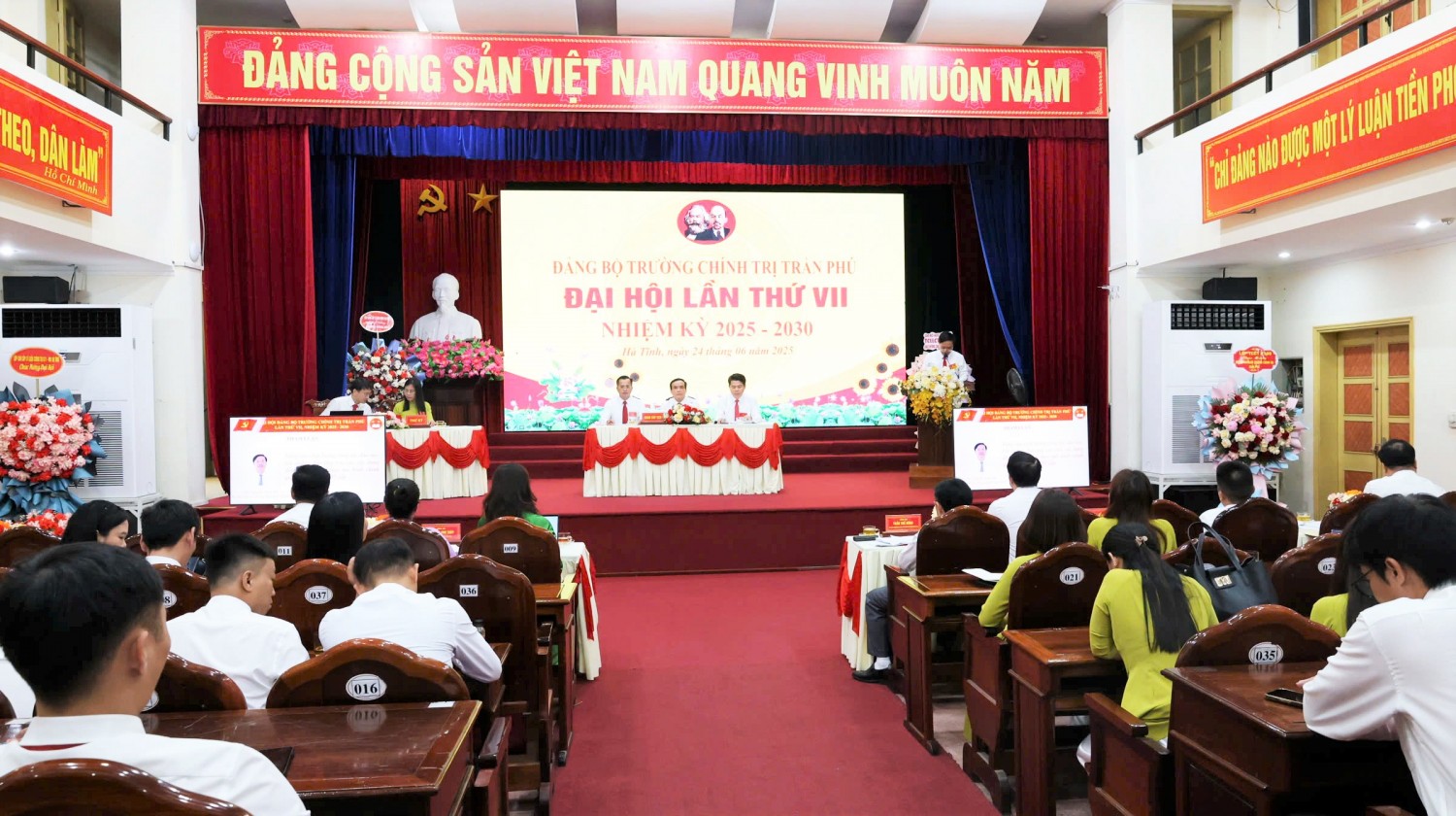 Phát biểu tại đại hội, đồng chí Trần Thế Dũng - Phó Bí thư Thường trực Tỉnh ủy, Bí thư Đảng ủy các cơ quan Đảng tỉnh nhấn mạnh trong nhiệm kỳ qua mặc dù gặp nhiều khó khăn, thách thức nhưng Đảng bộ Trường Chính trị Trần Phú đã không ngừng nổ lực, phát huy tinh thần đoàn kết, vượt qua khó khăn, tập trung lãnh đạo, chỉ đạo thực hiện thắng lợi các mục tiêu, nhiệm vụ Nghị quyết Đại hội đề ra. Nhiều nội dung đã tạo được đột phá, nâng cao uy tín và vị thế của nhà Trường trong công tác xây dựng đảng. Khẳng định vai trò quan trọng của nhà trường trong việc đào tạo, bồi dưỡng cán bộ đáp ứng nhiệm vụ chính trí trong giai đoạn mới. Đồng chí yêu cầu, Đảng bộ Trường cập nhật đầy đủ các chủ trương, đường lối của Đảng, Nhà nước về công tác xây dựng Đảng, phát triển kinh tế xã hội của tỉnh, tạo bước chuyển mạnh mẽ về chất lượng, hiệu quả hoạt động đào tạo, bồi dưỡng phù hợp với tình hình thực tiễn và yêu cầu xây dựng đội ngũ cán bộ sau khi thực hiện chủ trương sắp xếp, tinh gọn tổ chức bộ máy của hệ thống chính trị và mô hình chính quyền địa phương 2 cấp. Cùng với đó, Đảng bộ Trường Chính trị Trần Phú cần tiếp tục đổi mới phương thức lãnh đạo; phát huy trách nhiệm người đứng đầu cấp ủy; thực hiện có hiệu quả, thực chất trong học tập và làm theo tư tưởng, đạo đức, phong cách Hồ Chí Minh; tăng cường công tác kiểm tra, giám sát, giữ nghiêm kỷ luật, kỷ cương của Đảng. Đẩy mạnh các phong trào thi đua yêu nước; xây dựng cơ sở vật chất trường học, văn hoá công sở, môi trường làm việc chuyên nghiệp, dân chủ, đoàn kết, trách nhiệm cao. Ngay sau Đại hội, cần khẩn trương xây dựng, ban hành và tổ chức thực hiện tốt quy chế làm việc, chương trình công tác toàn khoá; cụ thể hoá Nghị quyết Đại hội thành chương trình hành động, kế hoạch; xác định rõ lộ trình, bước đi, nhiệm vụ trọng tâm, đột phá; phân công nhiệm vụ, gắn trách nhiệm cho từng đồng chí cấp ủy viên theo dõi, lãnh đạo, chỉ đạo để đưa Nghị quyết Đại hội phát huy hiệu quả trong thực tiễn. Trước mắt, Trường cần sớm xây dựng kế hoạch cụ thể phát động phong trào thi đua chào mừng Đại hội Đảng bộ các cấp và chào mừng kỉ niệm 80 năm thành lập Trường Chính trị Trần Phú.