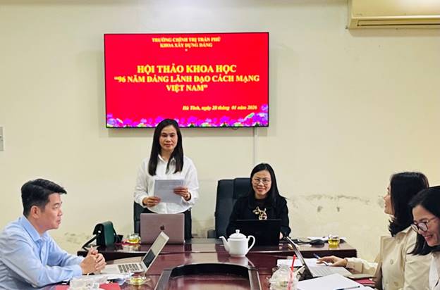 Phát biểu kết luận hội thảo, đồng chí Chu Thị Thu Huyền, Phó Trưởng khoa Xây dựng Đảng khẳng định: Hội thảo tiếp tục khẳng định vai trò lãnh đạo của Đảng Cộng sản Việt Nam là nhân tố quyết định mọi thắng lợi của cách mạng Việt Nam trong suốt 96 năm qua; góp phần cung cấp những luận cứ khoa học quan trọng để đấu tranh phản bác các luận điệu xuyên tạc của các thế lực thù địch, củng cố niềm tin của cán bộ, đảng viên và Nhân dân đối với Đảng và con đường đi lên chủ nghĩa xã hội ở Việt Nam. Kết quả Hội thảo là tài liệu tham khảo quan trọng phục vụ công tác giảng dạy, nghiên cứu khoa học và bảo vệ nền tảng tư tưởng của Đảng tại Trường Chính trị Trần Phú Hà Tĩnh trong giai đoạn hiện nay./.