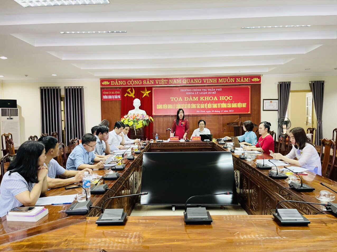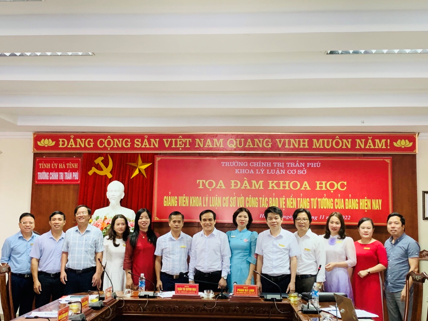 Sáng ngày 30/11/2022, Khoa Lý luận cơ sở tổ chức tọa đàm khoa học với chủ đề “Giảng viên Khoa lý luận cơ sở với công tác bảo vệ nền tảng tư tưởng của Đảng hiện nay”. Tham dự tọa đàm có đồng chí Nguyễn Trọng Tứ - Tỉnh ủy viên, Bí thư Đảng uỷ, Hiệu trưởng; đồng chí Trần Ánh Dương - Phó bí thư Đảng ủy, Phó Hiệu trưởng; đồng chí Nguyễn Quang Ngọc – Đảng ủy viên, Phó Hiệu trưởng phụ trách công tác nghiên cứu khoa học; đại diện lãnh đạo Phòng QLĐT&NCKH; toàn thể giảng viên và giảng viên kiêm nhiệm của Khoa lý luận cơ sở.