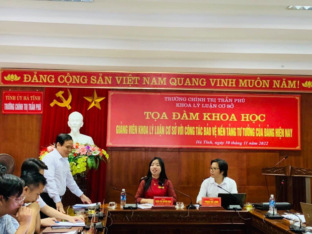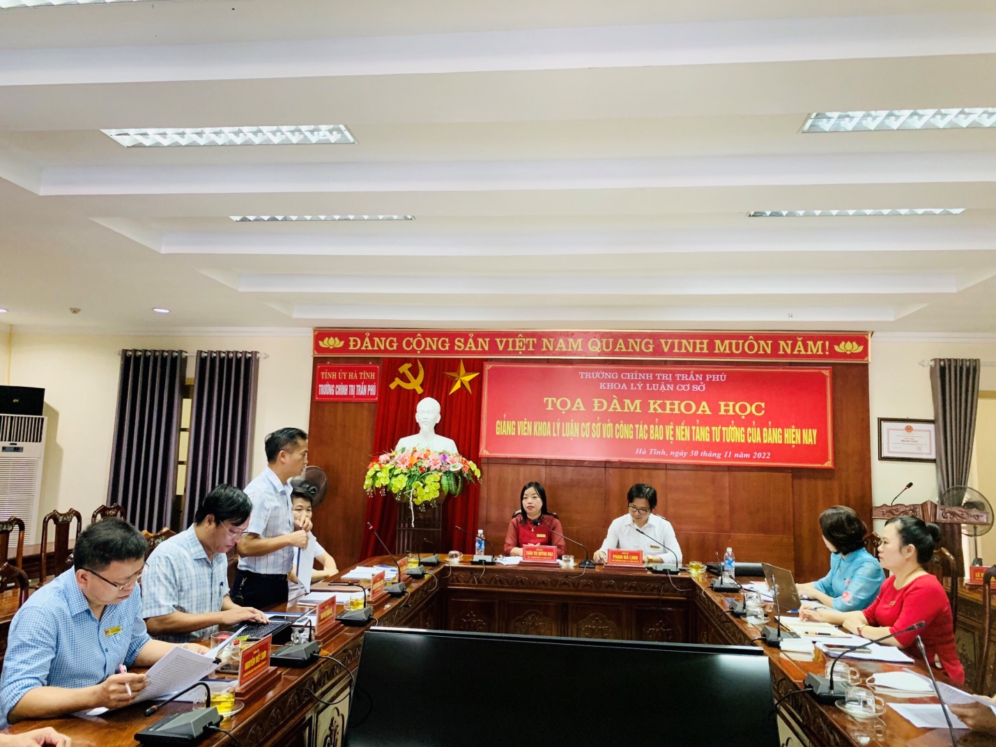 Sau đề dẫn của đồng chí Trần Thị Quỳnh Nga – Trưởng Khoa lý luận cơ sở, các ý kiến trao đổi, thảo luận đã tập trung làm rõ các nội dung cơ bản, trọng tâm công tác bảo vệ nền tảng tư tưởng của Đảng hiện nay; khẳng định vai trò các bộ môn Triết học Mác – Lênin, Kinh tế chính trị Mác - Lênin, Chủ nghĩa xã hội khoa học, Tư tưởng Hồ Chí Minh trong công tác bảo vệ nền tảng tư tưởng của Đảng, đấu tranh phản bác các quan điểm sai trái, thù địch. Đặc biệt là các ý kiến có sự thống nhất cao trong việc nêu ra các giải pháp tích hợp công tác bảo vệ nền tảng tư tưởng của Đảng trong giảng dạy bộ môn và công tác nghiên cứu khoa học; nâng cao nhận thức, trách nhiệm và vai trò của đội ngũ giảng viên trong công tác nghiên cứu, giảng dạy góp phần nâng cao nhân thức đối với các cấp ủy, chính quyền, đội ngũ cán bộ, đảng viên và quần chúng nhân dân trong bảo vệ nền tảng tư tưởng của Đảng, đấu tranh phản bác các quan điểm sai trái, thù địch.