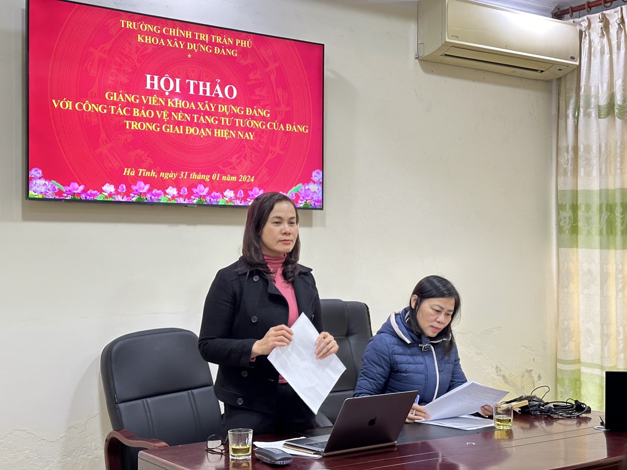 Phát biểu kết luận Hội thảo, Ths. Nguyễn Thị Mỹ Hạnh nhấn mạnh, với tinh thần làm việc tâm huyết, trách nhiệm, Hội thảo đã tập trung phân tích, luận giải, làm sáng rõ chủ đề đưa ra, nhất là việc đưa ra một số nội dung nhận diện các luận điệu xuyên tạc của các thế lực thù địch có liên quan đến các chuyên đề trong Phần học Lịch sử Đảng Cộng sản Việt Nam, Đường lối chính sách của Đảng, nhà nước, Xây dựng Đảng…; đồng thời nêu rõ trách nhiệm của đội ngũ giảng viên giảng dạy lý luận chính trị nói chung, giảng viên Khoa Xây dựng Đảng nói riêng cần thường xuyên tự tu dưỡng rèn luyện đạo đức lối sống, không ngừng học tập nâng cao trình độ để tự tạo cho mình sức đề kháng trước những thông tin xấu độc, nắm vững quan điểm của Chủ nghĩa Mác - Lênin, tư tưởng Hồ Chí Minh để có thể nhận diện được những luận điệu xuyên tạc của các thế lực thù địch cũng như tích hợp các nội dung vào bài giảng, góp phần quan trọng bảo vệ nền tảng tư tưởng của Đảng trong giai đoạn hiện nay .