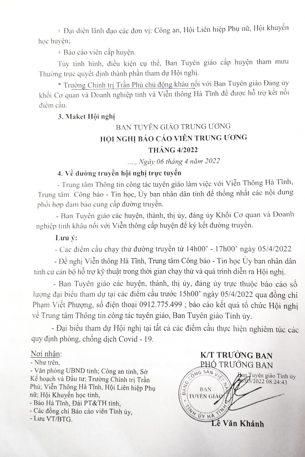 Công văn số 769 -CV/BTGTU về tổ chức Hội nghị báo cáo viên trực tuyến