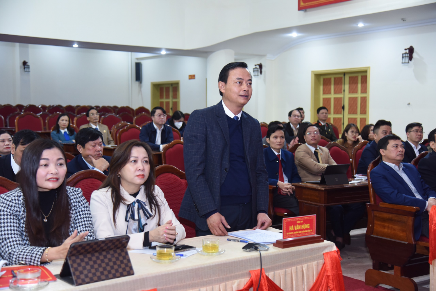 Trưởng ban Tuyên giáo Tỉnh ủy Hà Tĩnh phát biểu tại họp báo.
