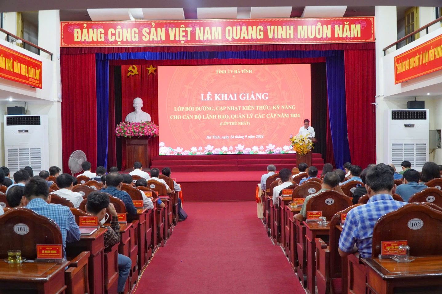 Tham dự lớp học có 153 đồng chí là lãnh đạo, quản lý cấp phòng thuộc khối chính quyền cấp tỉnh, cấp huyện. Trong 4 ngày (từ ngày 24/9/2024 đến ngày 27/9/2024), các học viên được bồi dưỡng, cập nhật kiến thức về: Tình hình kinh tế - xã hội, công tác xây dựng Đảng, xây dựng nông thôn mới, xây dựng phát triển văn hóa, con người Hà Tĩnh; đổi mới phong cách lãnh đạo, quản lý cho đội ngũ cán bộ theo tư tưởng Hồ Chí Minh; cải cách hành chính ở địa phương theo tinh thần xây dựng nhà nước kiến tạo, phát triển, liêm chính, hành động, phục vụ nhân dân; công tác bảo vệ nền tảng tư tưởng của Đảng, đấu tranh phản bác các quan điểm sai trái, thù địch trong tình hình mới,… Ngoài ra, các học viên còn có 01 buổi thảo luận, đối thoại với lãnh đạo tỉnh.