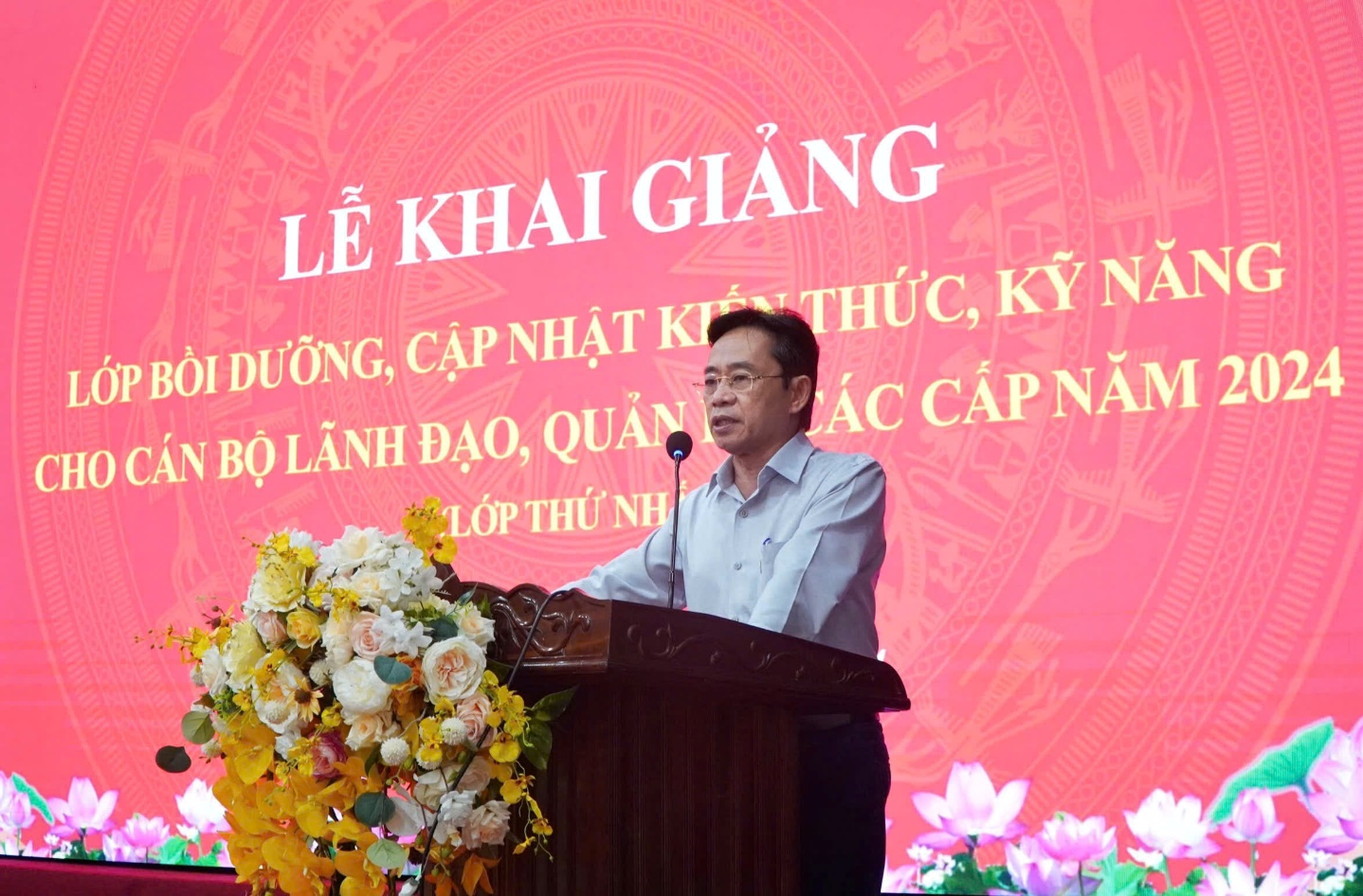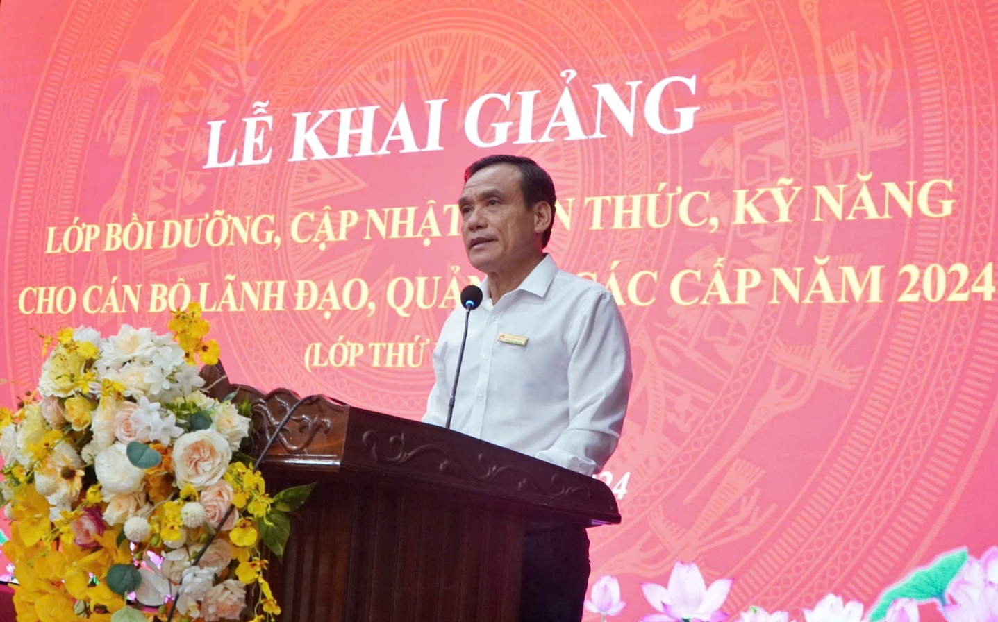 Phát biểu tại Lễ khai giảng, đồng chí Trần Thế Dũng - Phó Bí thư Thường trực Tỉnh ủy nhấn mạnh: Trưởng phòng, phó trưởng phòng cấp tỉnh, cấp huyện là lực lượng chuyên môn nòng cốt của tỉnh. Lớp bồi dưỡng, cập nhật kiến thức nhằm nâng cao nhận thức chính trị, tư tưởng, năng lực công tác cho cán bộ lãnh đạo, quản lý cấp phòng nhằm đáp ứng yêu cầu, nhiệm vụ của tỉnh trong tình hình mới. Vì vậy, các học viên cần sắp xếp công việc khoa học, chấp hành nghiêm túc nội quy, quy chế của lớp học, nêu cao tinh thần trách nhiệm, tích cực trao đổi, thảo luận những vấn đề chưa rõ trong quá trình học tập. Qua đó, tạo sự thống nhất trong nhận thức và hành động, gắn lý luận với thực tiễn công tác ở địa phương, đơn vị, nâng cao năng lực tham mưu, góp phần hoàn thành thắng lợi các mục tiêu, nhiệm vụ của địa phương, đơn vị.