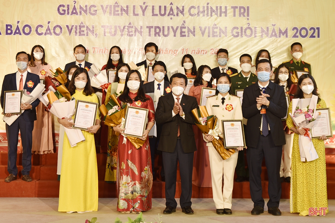 Ban Tổ chức Cuộc thi Giảng viên lý luận chính trị và báo cáo viên, tuyên truyền viên giỏi cấp tỉnh năm 2021 trao tặng giải nhì đ/c Trần Thị Quỳnh Nga - Trưởng khoa Lý luận cơ sở.