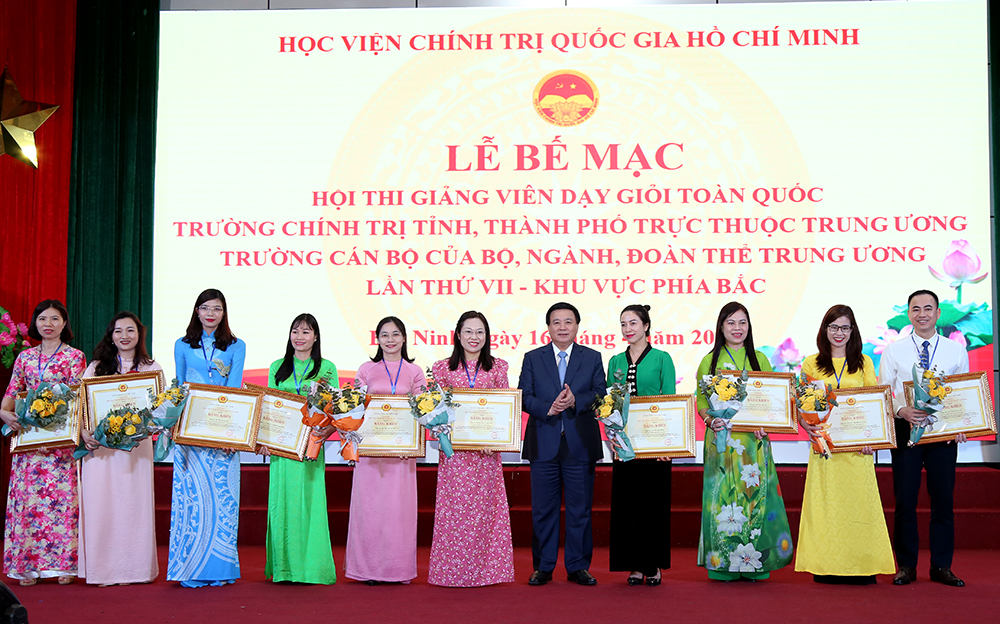 GS,TS Nguyễn Xuân Thắng, Ủy viên Bộ Chính trị, Giám đốc Học viện Chính trị quốc gia Hồ Chí Minh, Chủ tịch Hội đồng Lý luận Trung ương trao tặng Danh hiệu Giảng viên dạy giỏi xuất sắc và bằng khen của Giám đốc Học viện chính trị quốc gia Hồ Chí Minh cho đ/c Nguyễn Thị Thảo Linh tại Hội thi giảng viên dạy giỏi toàn quốc lần thứ VII – Khu vực phía Bắc