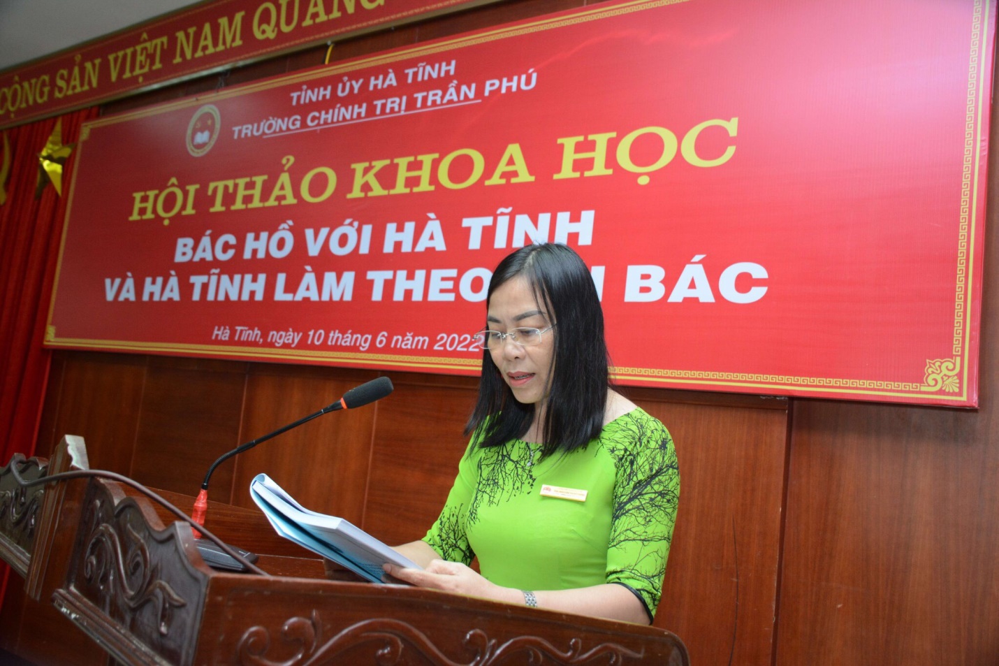Đ/c Chu Thị Thu Huyền trình bày tham luận tại Hội thảo khoa học “Bác Hồ với Hà Tĩnh và Hà Tĩnh làm theo lời Bác”