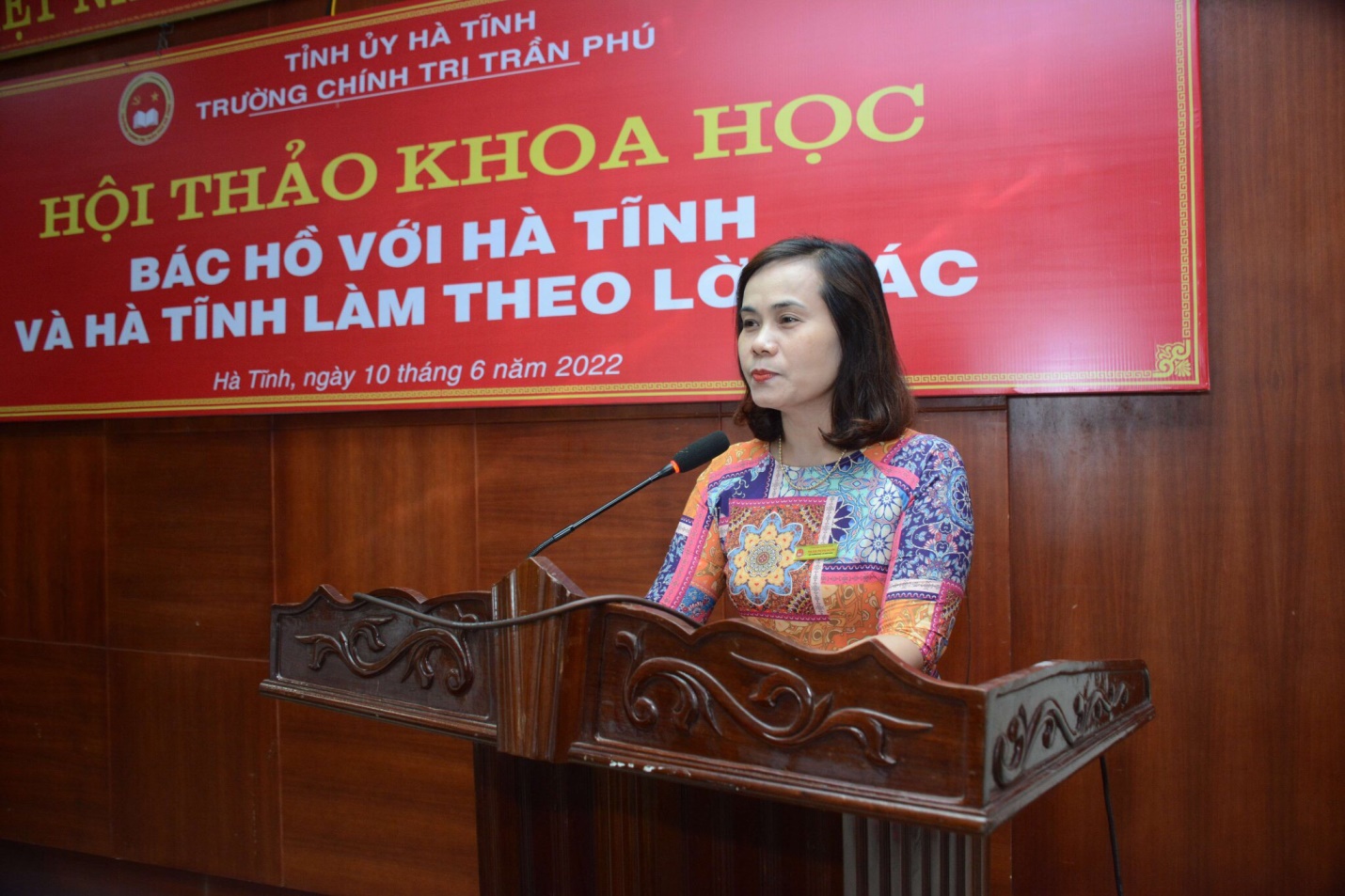 Đ/c Nguyễn Thị Mỹ Hạnh trình bày tham luận tại Hội thảo khoa học “Bác Hồ với Hà Tĩnh và Hà Tĩnh làm theo lời Bác”