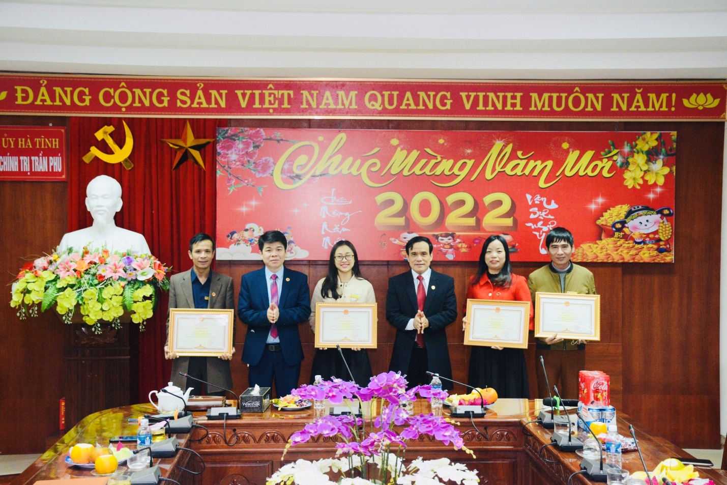 Ban Giám hiệu trao tặng Bằng khen của Chủ tịch UBND tỉnh năm 2021cho đ/c Trần Thị Quỳnh Nga và đ/c Nguyễn Thị Phương Thúy