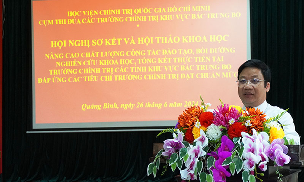 Phát biểu tại Hội nghị, đại diện lãnh đạo Vụ các trường chính trị, lãnh đạo Ban Tuyên giáo Tỉnh ủy Quảng Bình mong muốn các Trường chính trị Khu vực Bắc Trung Bộ tiếp tục nỗ lực thực hiện tốt các nội dung thi đua theo quy định của Học viện Chính trị quốc gia Hồ Chí Minh; tập trung hoàn thành các tiêu chí trường chính trị chuẩn; tiếp tục nâng cao chất lượng đội ngũ cán bộ, giảng viên; triển khai sâu rộng các nhiệm vụ đào tạo, bồi dưỡng, nghiên cứu khoa học gắn với công tác bảo vệ nền tảng tư tưởng của Đảng; các trường quan tâm chuẩn bị tốt công tác thao giảng để chuẩn bị cho Hội thi giảng viên giỏi được tổ chức vào năm 2025.